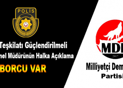 "Milliyetçi Demokrasi Partisi (MDP) olarak son dönemde ülkemizde artan asayiş olayları ve polis teşkilatımızın bu olaylar karşısında yetersiz kalmasını üzüntü ve endişe ile takip ediyoruz.